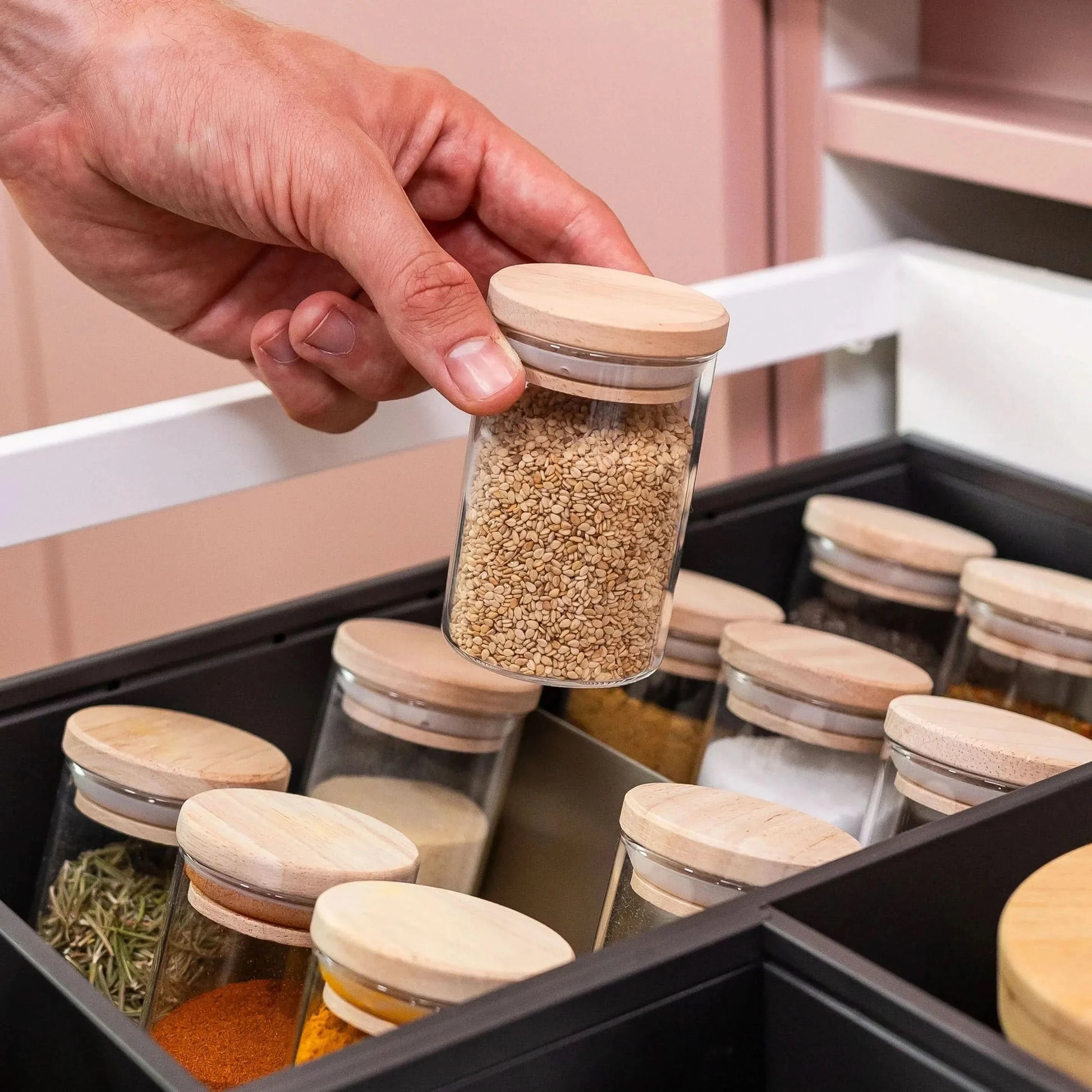 12x Gewürzgläser mit Holz-Verschluss